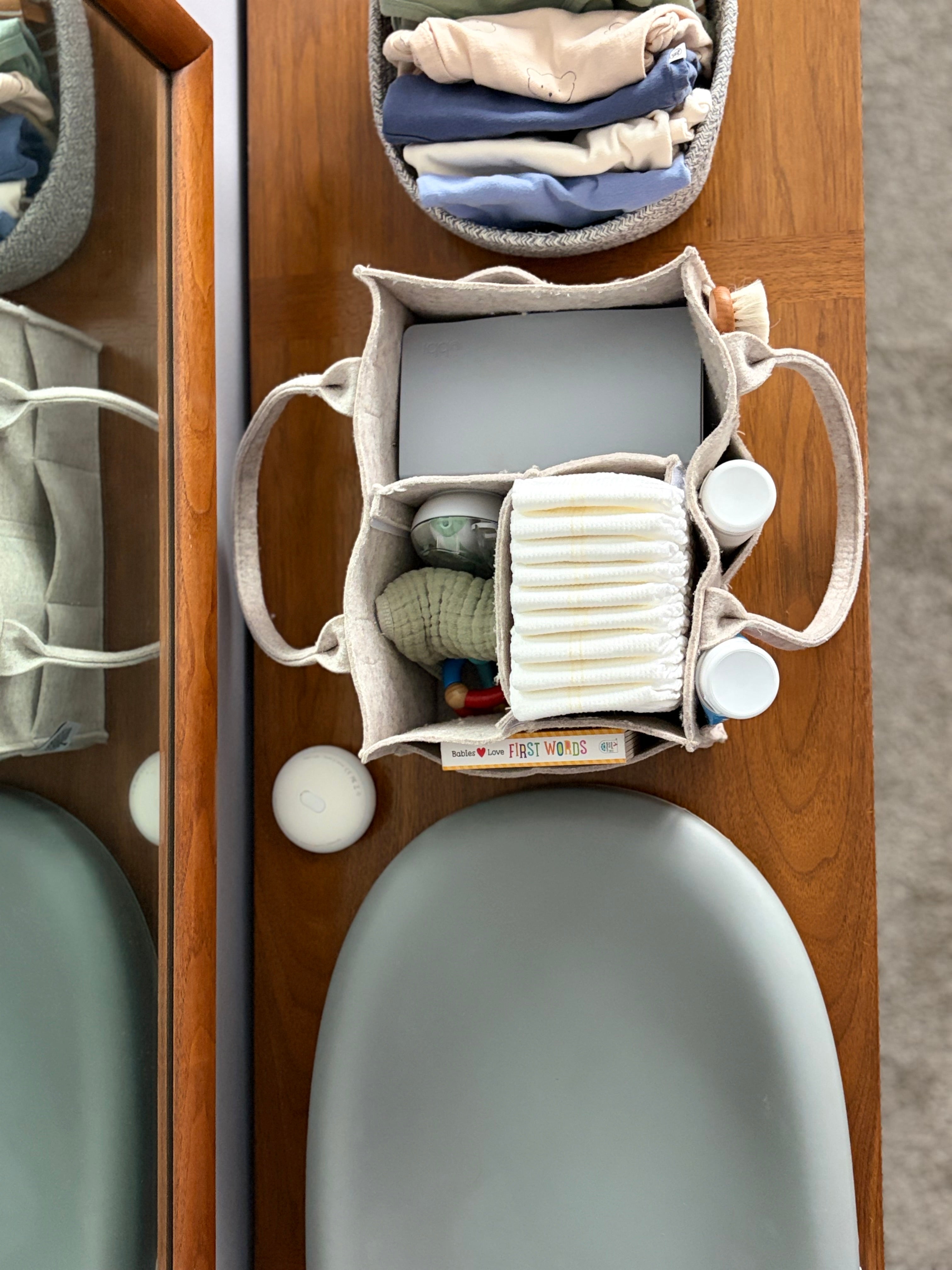 - Bedside Arrangements: Create a nighttime changing/feeding setup if room-sharing with baby.